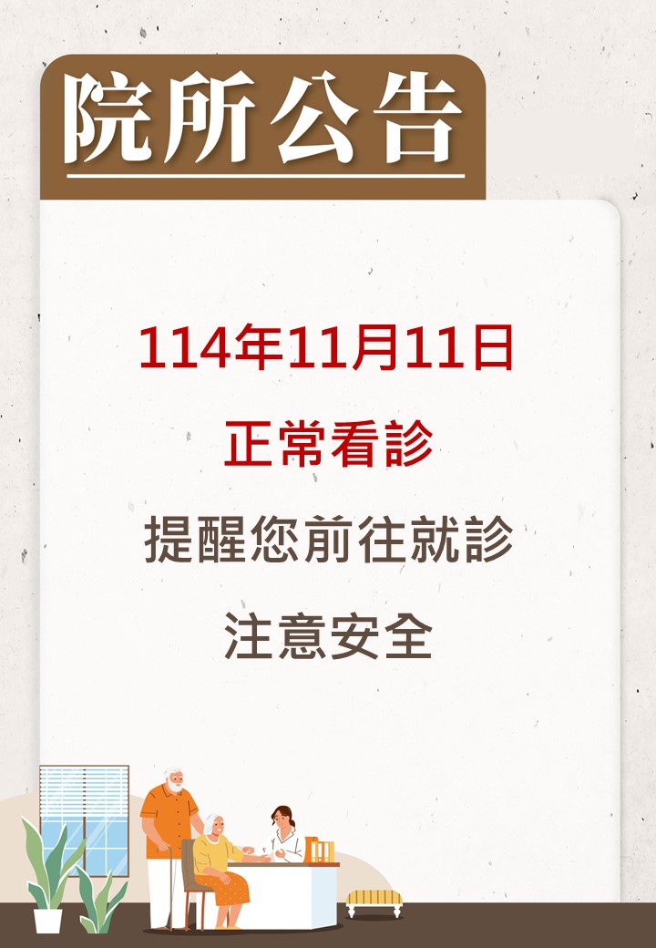 【院所公告】114年11月11日正常公告2025.11.11📢【院所公告】 今日114年11月11日(二) 本院正常看診 ⭐️小編提醒 : 前往出門看診請注意安全 💟桃園永安中醫診所關心您💟 https://taoyuanyonganmed.com/wp-content/uploads/sites/9/2025/11/1111正常看診非風澤_0.jpg 1040 720 fengze.bd https://taoyuanyonganmed.com/wp-content/uploads/sites/9/2025/05/桃園永安logo_414x96-1.png fengze.bd2025-11-11 06:29:172025-11-11 06:34:28【院所公告】114年11月11日正常公告